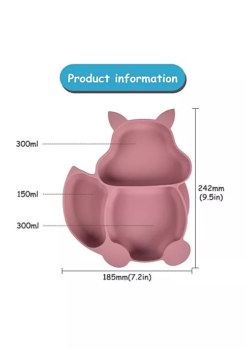 Includes: Racoon shaped dish, bowl, bib with food catcher, 2 spoons, and 2 forks