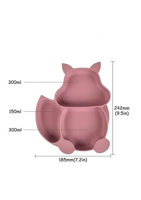 Includes: Racoon shaped dish, bowl, bib with food catcher, 2 spoons, and 2 forks