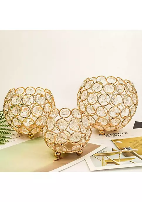 This tealight candle holder with high-quality K9 crystal and silver/gold metal frame is flame retardant