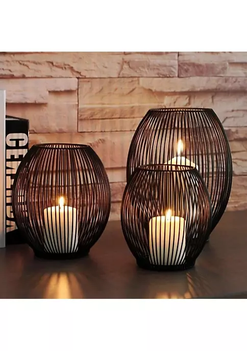 Candle stands that are made to last. This candler holder is made of wrought iron coated with high quality matte black stove-varnished finish. The primitive cylinder cage shape is designed to be durable and modern.