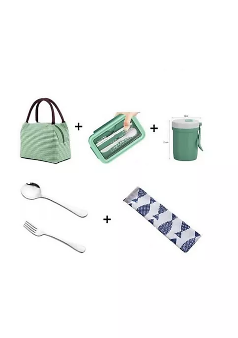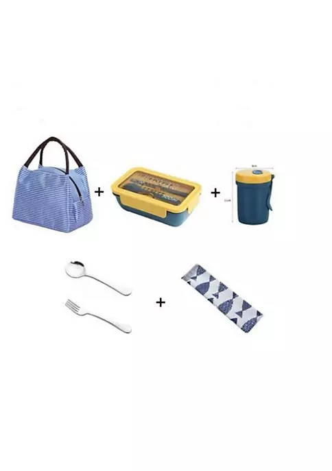 - Bento Box: 4.9in W x 3in D x 8in H Capacity: 37oz Thermos: 3.14in W x 4.3in H Lunch Bag: 9in W x 6.3in D x 7.5in H