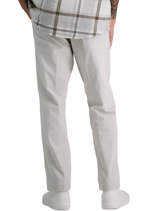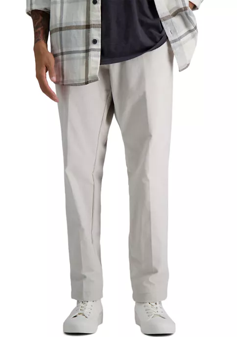 - Button closure, zip closure, expandable waistband, belt loops