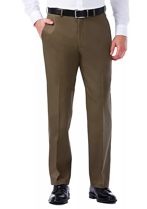 Haggar® Men’s Iron Free Premium Khaki Straight Fit Flat Front Hidden Comfort Waistband Casual Pants