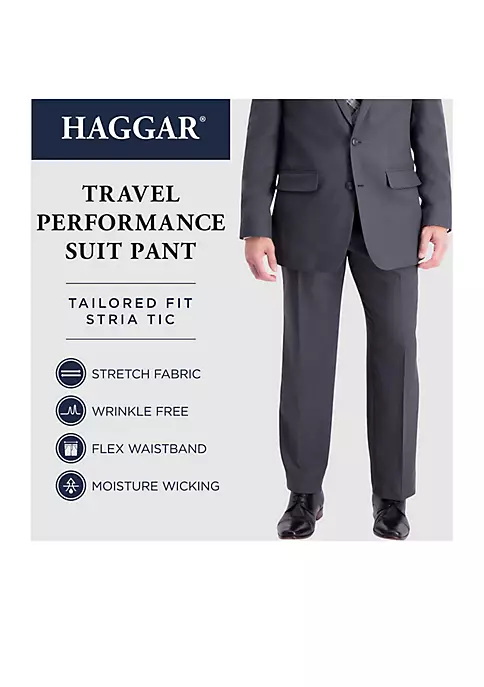These tailored fit suit pants feature stretch fabric that makes them an ideal choice for travel or days when you need to look sharp on the go.