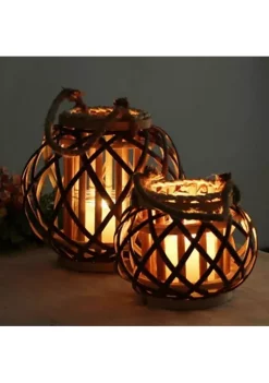 All Abundant Things Home Design Handcrafted Dimond Weave Wooden Wicker Lantern