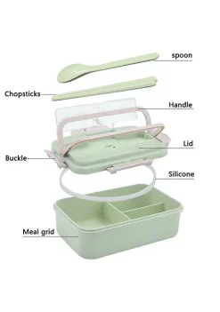 All Abundant Things Home Design Wheat Straw Two Layer With Handle Microwavable Bento Lunch Box